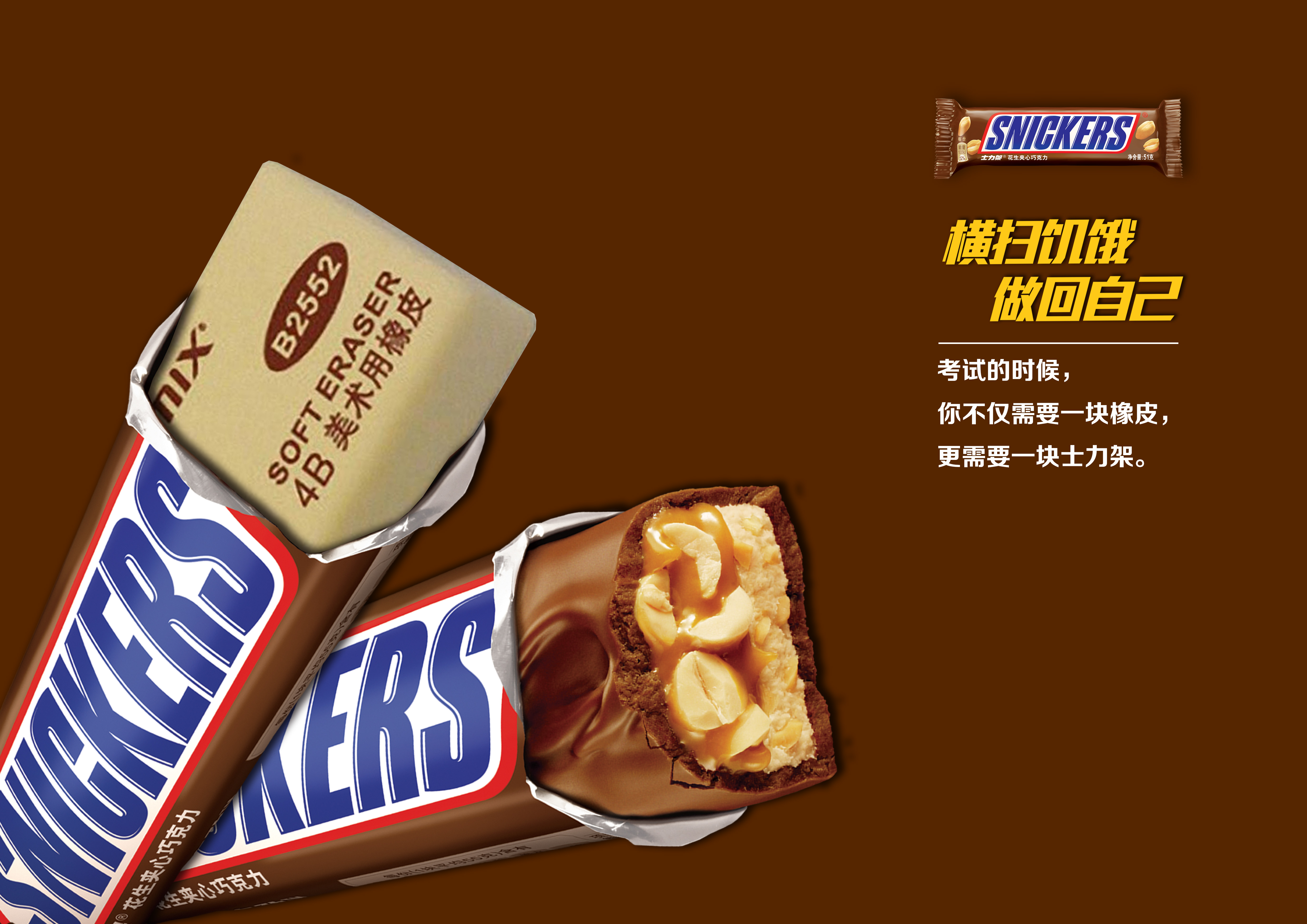 士力架-你不仅需要一块橡皮 238 3094 0 设计 分享 把撕开的士力架和考试中常用的橡皮结合起来,向消费者传达在考试中不仅橡皮不可代替士力架也是非常需要的,橡皮可以擦掉写错的地方,同时士力架可以让我们横扫饥饿、做回自己。 赞一下 贰零一路 ‹ › 发布