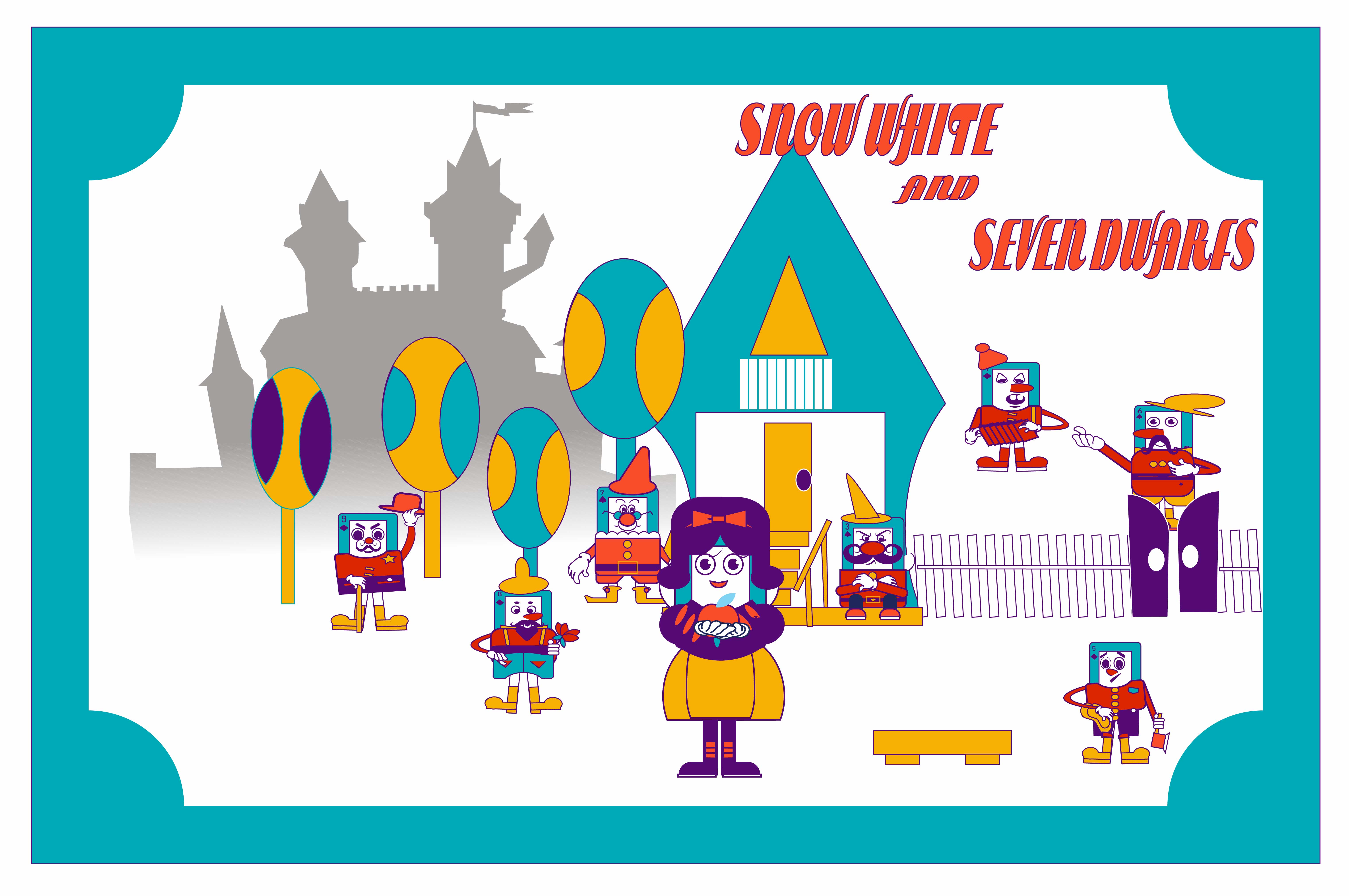 创意来源于德国格林兄弟的《白雪公主》,以扑克牌为载体,绘出白雪公主与小矮人的生活日常.