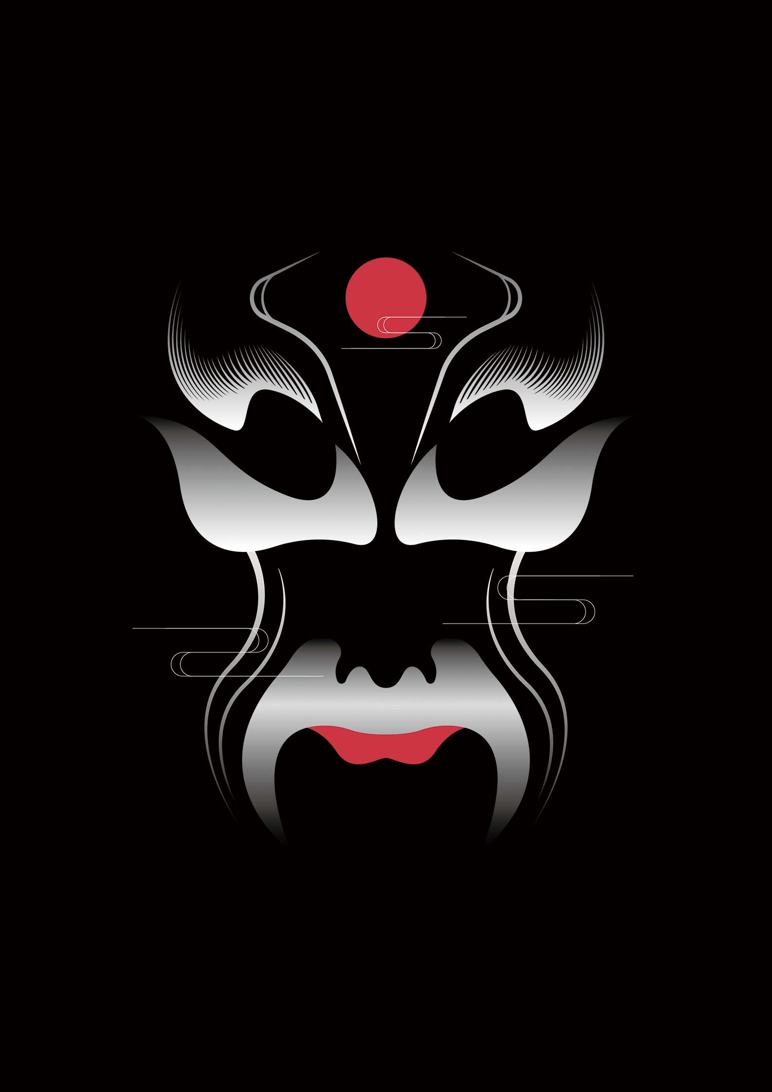 將京劇臉譜轉化成仙鶴、落日、山水等意象,展現中國風的綺麗
