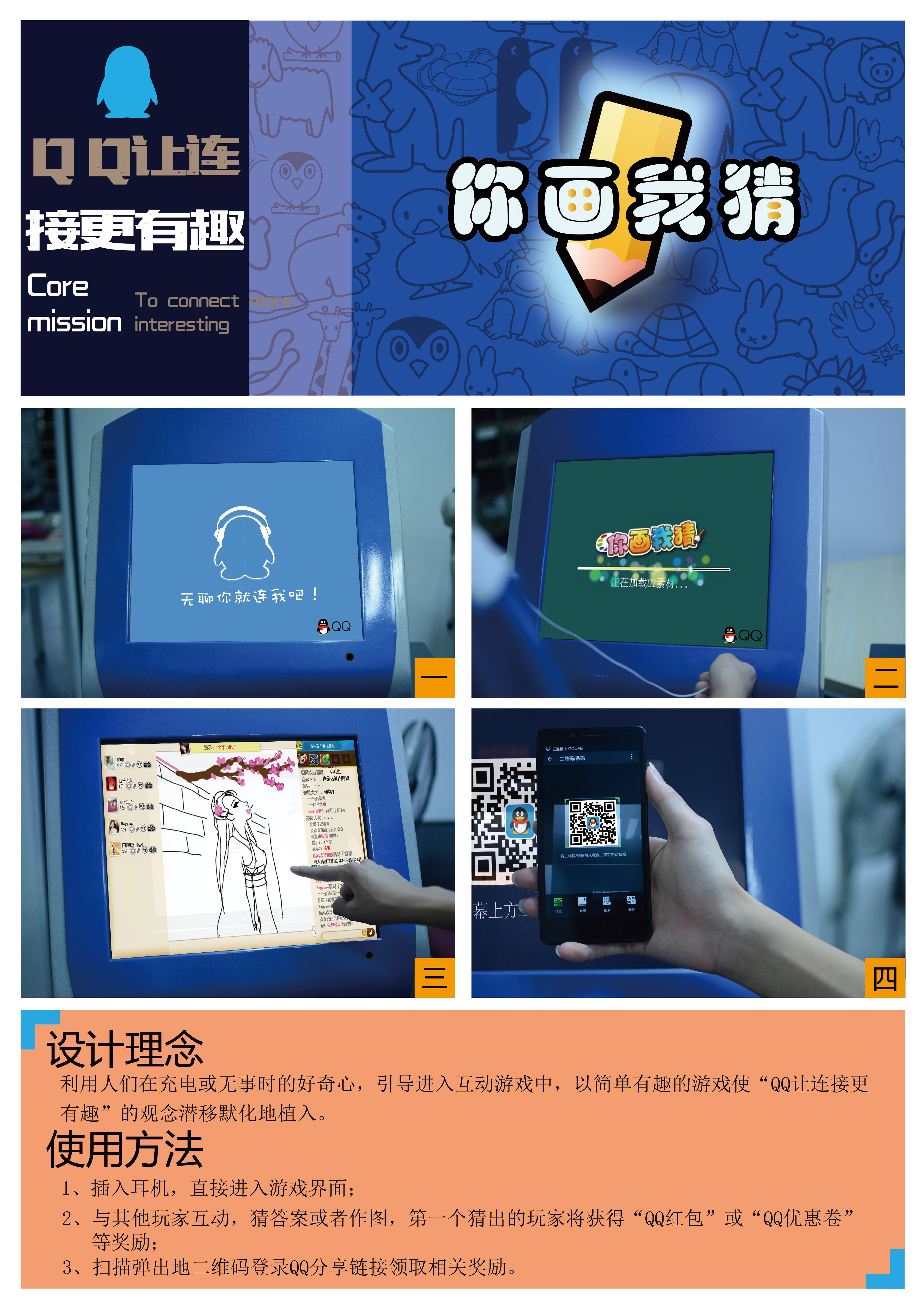 《QQ连接--你画我猜》 918 2619 0 摄影 分享 QQ在户外移动端设立吸引路人停留驻立的界面,通过大家插耳机进机器后画面自动跳转到“你画我猜”的游戏界面中去,参与游戏猜对答案者可领取QQ相关奖励,让你在候车、等人的这段时间里不再无趣。 赞一下 地表最强 ‹ › 发布