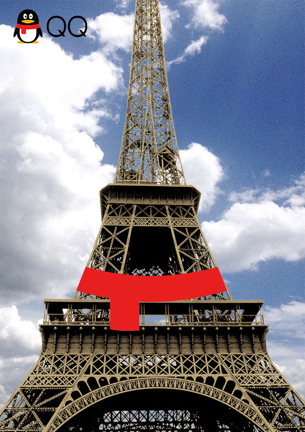 QQ与浪漫的埃菲尔铁塔连接在一起。