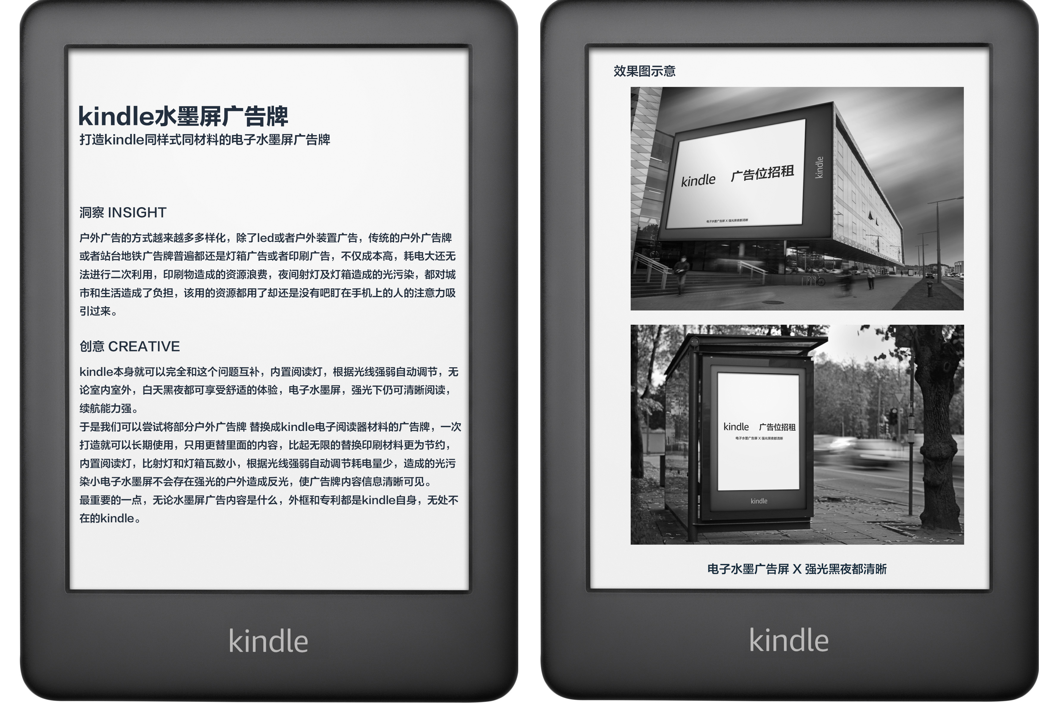 【户外广告形式创新】Kindle水墨屏广告牌 309 2241 0 分享 我们将Kindle特有的电子水墨屏做成广告牌的形式,既能够与其他品牌合作用于投放广告,同时又能向大家展现Kindle电子水墨屏的特性。 赞一下 神奇队友在哪里 ‹ › 发布